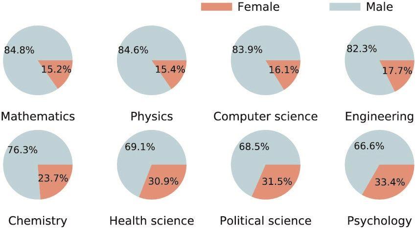 并且,研究者也证实了这一现象在所有主流学科中都不同程度地成立,既包括数学、物理等传统印象中认为男性占优的学科,也包括心理学等通常认为性别差异不明显的学科。