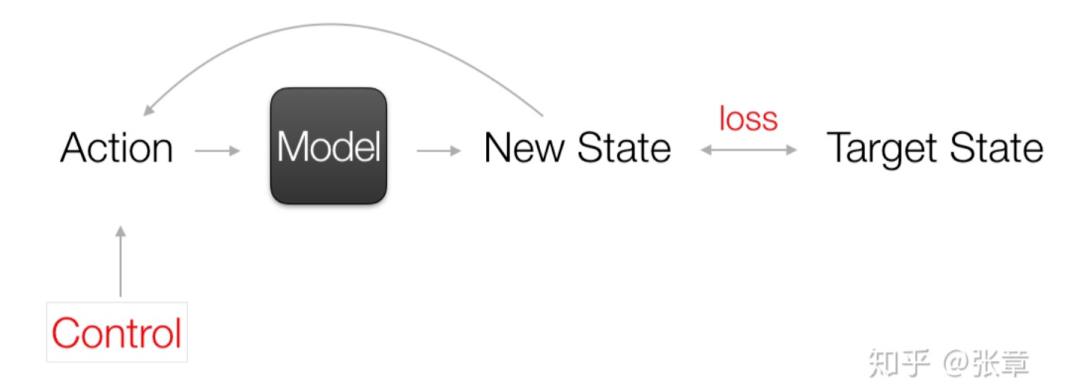 控制:输入 action 并作为优化参数,通过 model 模拟优化,最终选择最优的动作去执行,迭代进行这个过程,最终可以完成对系统的控制。
