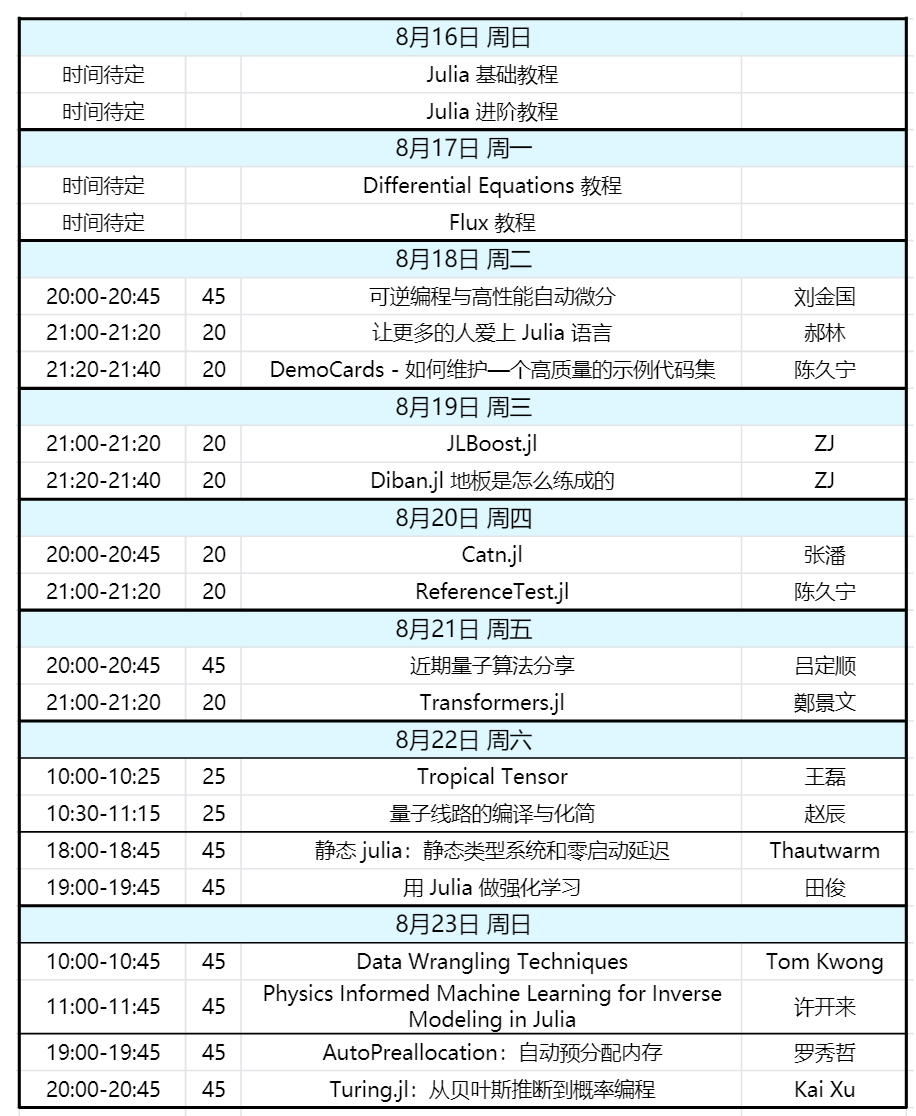 时间表可能有微调,具体以JuliaCN官方论坛通知为准,扫码查看: