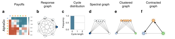 如上图所示,对AlphaGo策略聚类后,最终能够将围棋归为循环型的游戏,即不存在一个始终占优的策略。这也符合我们的常识。