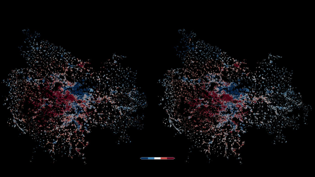 为了进一步提高机器学习模型的可解释性,研究者使用了guided Grad-CAM(guided gradient-weighted class activation mapping)——一种基于梯度的热力图模型将卷积神经网络的抽象运算映射回城市的地理空间。