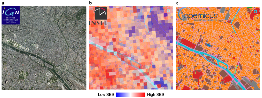 然而,深度学习的可解释性问题,也给这一新方法带来了限制。例如,城市几何结构和高分辨率影像之间没有建立起关系。近日,来自法国里昂大学的 Jacob Levy Abitbol 和 Márton Karsai利用深度学习模型以及相关的解释方法,通过航空影像数据预测了城市的经济水平并从城市影像的几何结构上给出了解释。这一研究于2020年10月发表在 Nature Machine Intelligence 上。