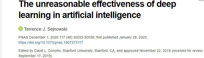 在这种传统中,作者通常会指出一种技术 (例如,数学、大数据、深度学习) 在某些领域获得了毋庸置疑的成功,但我们并不完全理解,而且从更高层次的角度来看,这种技术似乎令人惊讶。Sejnowski 研究了这样一个悖论: 对于一系列重要的机器学习问题,深度学习比传统的统计学习理论预测的效果要好得多。Sejnowski 认为,尽管今天的深度学习系统是受到大脑皮层的启发,但要达到人工一般智能,还需要从其它重要的大脑区域获得启发,比如那些负责计划和生存的区域。
