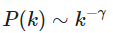 ER模型中的度分布近似于泊松分布,而Watts-Strogatz模型生成的图在度上是同质的,度分布函数为狄拉克 Dirac δ函数。然而,不同于这两类模型,许多现实世界中的网络,例如生物学网络 biological networks,或者科研合作网络 scientific collaboration networks 都是无标度的scale-free,这意味着他们的度分布遵循以下形式的幂律分布: