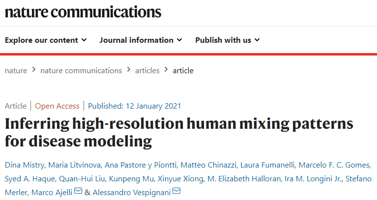 论文题目:Inferring high-resolution human mixing patterns for disease modeling[2021-01-12]论文地址:https://www.nature.com/articles/s41467-020-20544-y