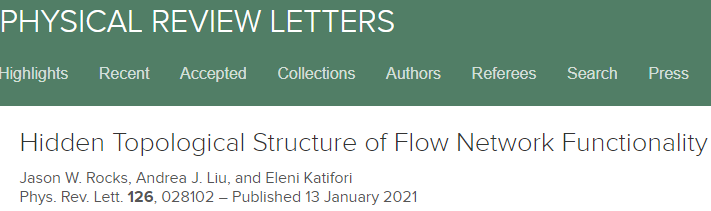 论文题目:Hidden Topological Structure of Flow Network Functionality[2021-01-13]论文地址:https://journals.aps.org/prl/abstract/10.1103/PhysRevLett.126.028102