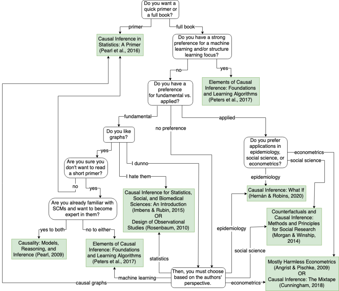 为了让你基于流程图,能够更清晰明确地知道要读那本书,Brady Neal基于他自己的认识,为这些书籍做一个简短的介绍。