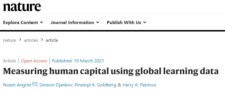 原文标题:Measuring human capital using global learning data原文地址:https://www.nature.com/articles/s41586-021-03323-7