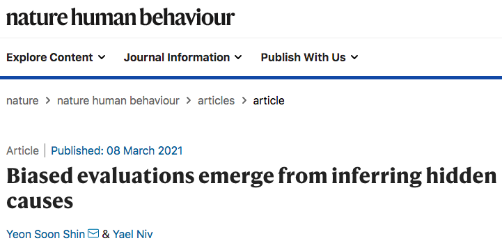 论文标题:Biased evaluations emerge from inferring hidden causes论文地址:https://www.nature.com/articles/s41562-021-01065-0