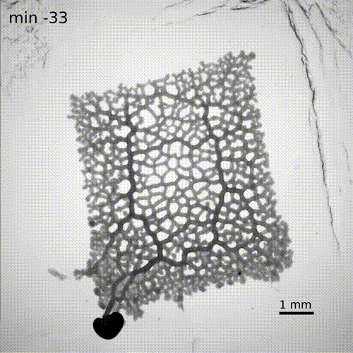 多头绒泡菌的网络可以自由的伸缩、移动,这一特点就使得该生物能够逃离有危险的环境,并追寻食物的来源。而且,这种生物可以把已知的食物信息编码到自身的网络结构中(网络管道的粗细分布),并利用已存储的信息对未知事件进行决策。在这项研究中,Mirna 与 Karen 发现,当黏菌接触到食物后,会释放出相应的化学物质,软化自身的网络结构,从而改变网络管道的粗细程度与流量。进而让整个生物体向有食物的一方进行迁移。