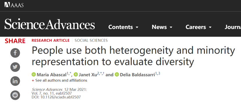 论文标题:People use both heterogeneity and minority representation to evaluate diversity论文地址:https://advances.sciencemag.org/content/7/11/eabf2507/tab-pdf