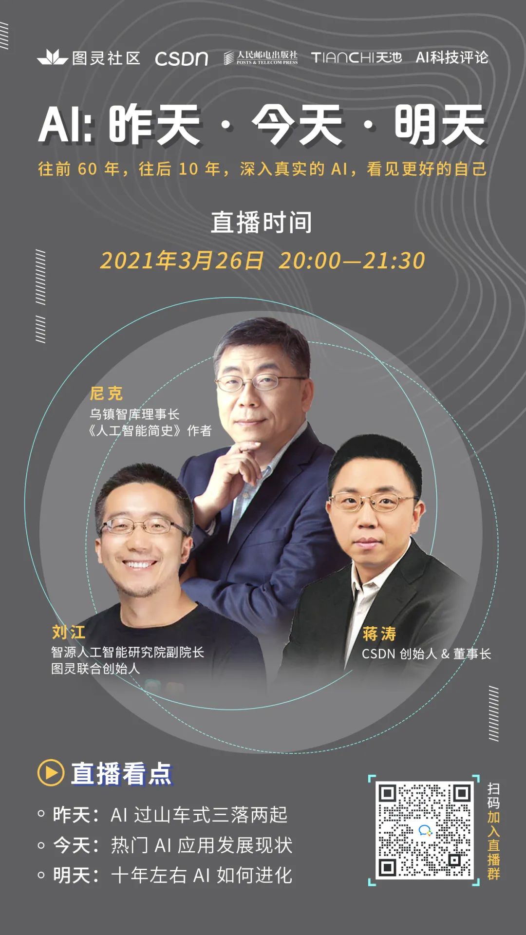 而这一次,经过多次沟通与协调,我们在 3 月 26 日这天,邀请到了尼克老师进行一次直播,探讨 AI 的昨天、今天、明天。