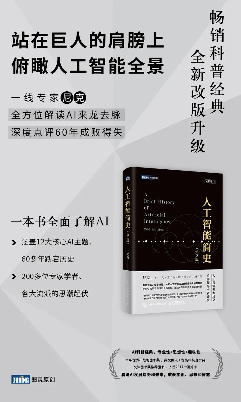 不论有多少本“简史”图书,不论 AI 的历史被后人“翻拍”多少遍,尼克老师的《人工智能简史》肯定属于在书群中一眼就被认出的类型。