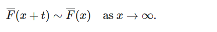 分布函数为 F 的随机变量 X 具有长尾分布,如果对于所有 t>0,都满足