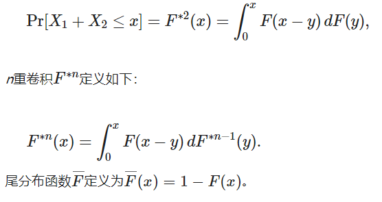 次指数性是根据概率分布的卷积 Convolution 定义的。对于具有共同分布函数 F 的两个独立同分布的随机变量 X1,X2, F与自身的卷积,F*2是二重卷积,使用Lebesgue–Stieltjes积分,方法如下:
