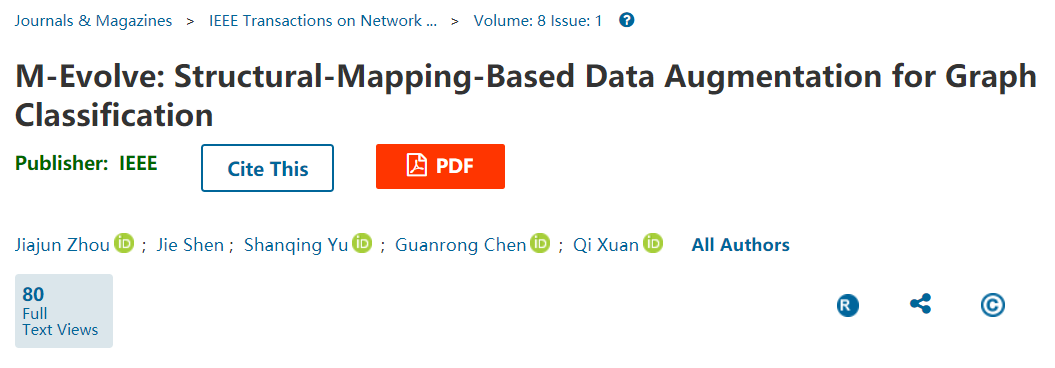 鉴于此,来自浙江工业大学·网络空间安全研究院的宣琦教授团队对此问题进行了研究——探索图结构数据上的数据增强。这项研究工作的结果于2020年发表在IEEE Transactions on Network Science and Engineering (IEEE TNSE) 期刊。