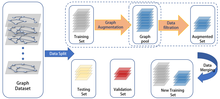 最后,作者提出了一个模型演化框架M-Evolve,该框架结合了数据增强、数据筛选、模型迭代重训练三个部分,如图5所示,可以有效地逐步优化图分类器,缓解过拟合,提高泛化能力。
