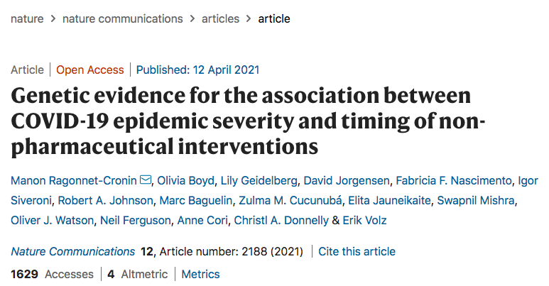 COVID-19疫情严重程度与非药物干预时机之间关联的基因证实报告