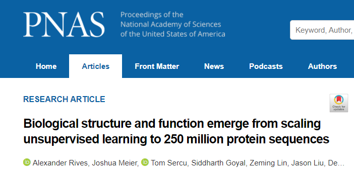 利用无监督学习从2.5亿个蛋白质序列中探索生命