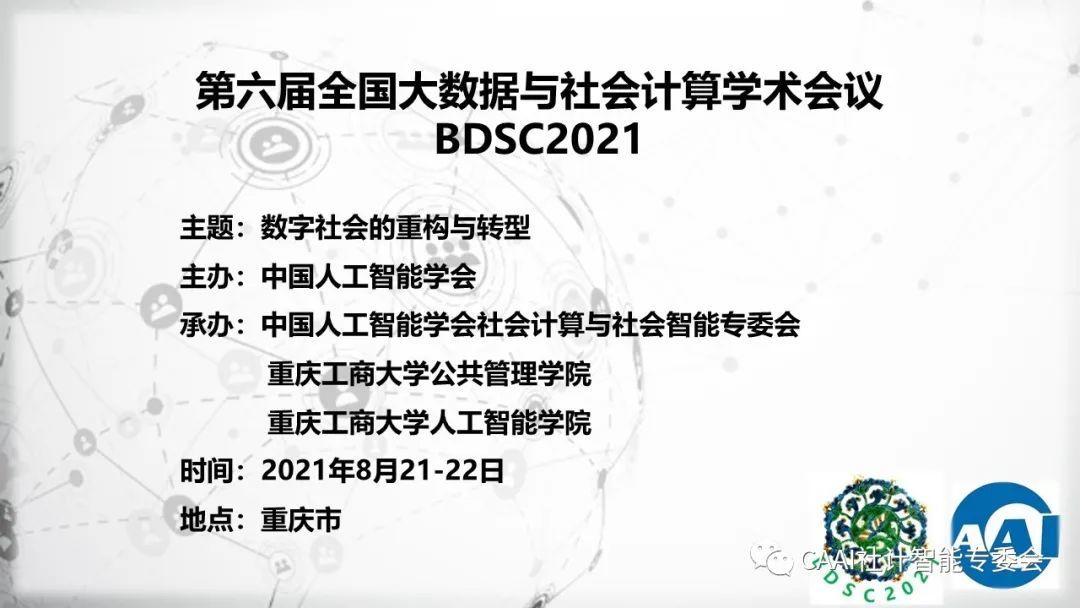 征文通知-CAAI第六届全国大数据与社会计算学术会议(BDSC2021)