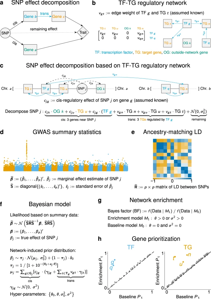 为了释放GWAS中调控网络的潜力,5月14日发表在 Nature Communications 上的一篇文章开发了一种贝叶斯框架(RSS-NET),用于同时进行全基因组网络富集和基因优先级分析。通过广泛的仿真,文章说明了该框架的几个优点,如,各种遗传结构下的灵活性,对各种模型错误的鲁棒性以及与现有方法相比的性能提升。将该方法应用于18种人类特质和38个调控网络,可以发现特质相关细胞类型或组织特有的网络拓扑结构中遗传关联的丰富性。通过对丰富网络中的变异进行优先排序,该框架可以确定与同一GWAS无关的与性状相关的基因,这些结果证明了新框架在从现有数据中获得更多生物学和医疗见解方面的潜力。
