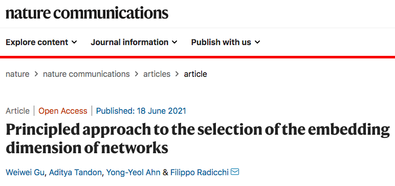 网络嵌入是复杂网络分析的重要手段,而网络嵌入维度的选择,对嵌入算法的性能优劣有着至关重要的影响。6月18日最新发表于Nature Communications 的论文,从网络几何学的分析视角,提出了一种自动判定网络最优嵌入维度的算法,该算法能够在不依赖下游机器学习准确率的前提下,自动判定出不同嵌入算法的最优维度。论文第一作者谷伟伟任教于北京化工大学信息学院,是集智科学家社区成员。