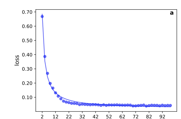 研究者对模拟网络,进行几何嵌入(geometric embedding )时,也能发现类似的规律,即预估的损失和实际基本一致,且该曲线能够对应(提前指示)预测任务上的性能饱和(saturation)点。这意味着最优嵌入点的算法是稳定的。
