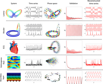 Bongard 和 Lipson使用符号回归报告了系统识别的早期突破。该方法对描述动力学的最佳方程执行启发式搜索。然而,它们价格昂贵且不易扩展到大型系统。简约建模的最新发展导致了“非线性动力学的稀疏识别”(sparse identification of nonlinear dynamics,SINDy)算法,该算法可从数据中识别准确的简约模型。同样,SINDy 也不容易扩展到大型问题。对于中等维度的特征空间,计算开销已经变得过高。