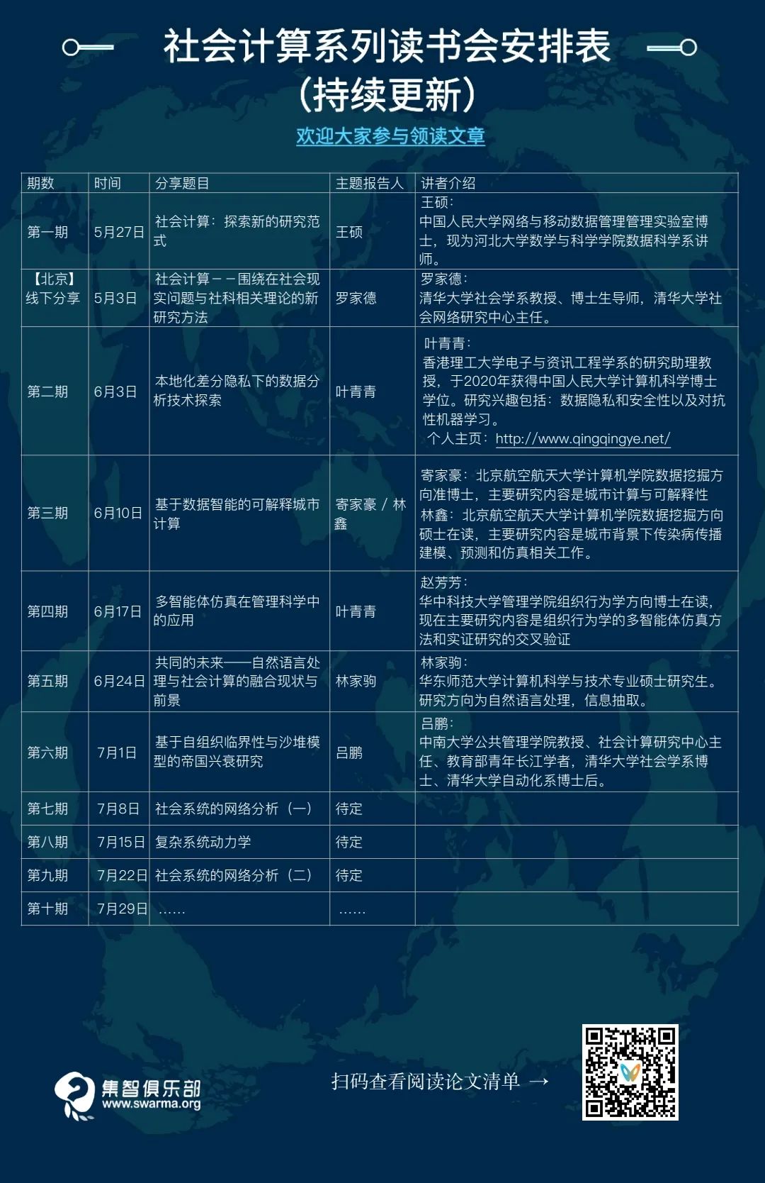 融合计算科学、社会科学与复杂科学:社会计算系列读书会启动招募 -