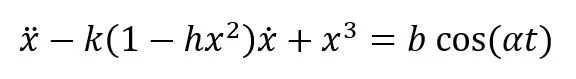 其中 k, b, λ, α为参数。范德波尔于1927年9月在《Nature》杂志上发文报告了基于这个微分方程的霓虹灯实验,说当驱动信号具有某种自然频率时,会听到“毫无规律的噪声”。这篇文章很可能是观察到物理混沌现象最早的实验报告,只不过那时还没有混沌这个概念,更谈不上其数学理论。