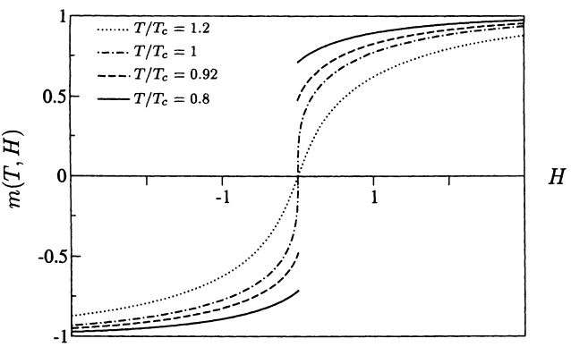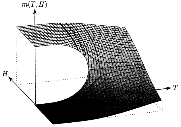 通过计算机模拟实验,也可以通过平均场近似方法解析地给出平均磁矩随参数H和T的变化情况: