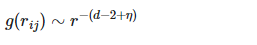 其中 d为伊辛模型所在空间的维度,η为幂律指数。幂律衰减会比指数衰减慢很多,这也就意味着两磁针之间的关联长度会很长。假如我们仍然用指数函数来拟合相关性的衰减,即假设