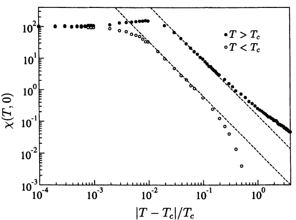 图中的黑色曲线表示T>Tc的结果,开放圆圈表示T<Tc的结果。这个幂律行为可以用公式: