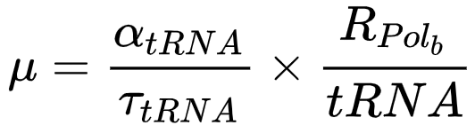 在这个研究中,作者兼顾了转录与翻译,推导出基于转录-翻译机器的自催化的生长规律。此外,作者发现在所有细菌内,转录与翻译过程均耦合了其他的自催化循环,而不需要其他复杂的反馈。这种耦合锁定了所有循环,使所有组分保持相同的生长速率,细胞得以呈现均衡的指数增长状态(balanced exponential growth)。
