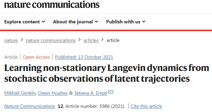 论文标题: Learning non-stationary Langevin dynamics from stochastic observations of latent trajectories 论文地址: https://www.nature.com/articles/s41467-021-26202-1