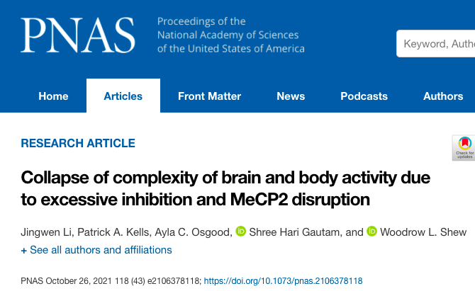 Collapse of complexity of brain and body activity due to excessive inhibition and MeCP2 disruption[2021-10-26]