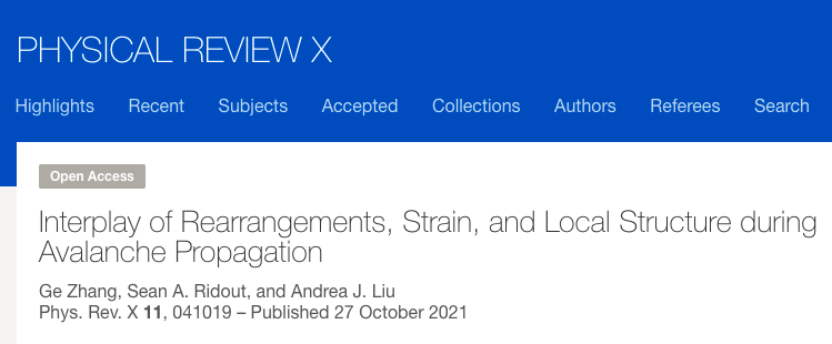 10月27日发表于Physical Review X 的文章采用一个通过机器学习方法获得的量——柔软度(softness),来描述每个粒子的局部结构环境,首次解开了局部结构、重新排列以及弹塑性间的相互作用。该研究表明,原有的弹塑性模型必须考虑完全张拉应变场,从而纳入由于重新排列导致的局部屈服应变变化的影响。