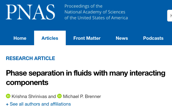 自然系统中不相溶的流体随处可见,比如厨房中的油和醋。正是这些由不同组分构成的共存多相,分隔了许多相互作用的途径,使得多样而具体的功能出现在各类细胞和生物体中。比如在活细胞内,成千上万的生物分子组织成多种共存的液相,从而产生不同的功能。然而,人们却不理解系统各个组分间的大量相互作用是如何涌现为多种宏观的液相。