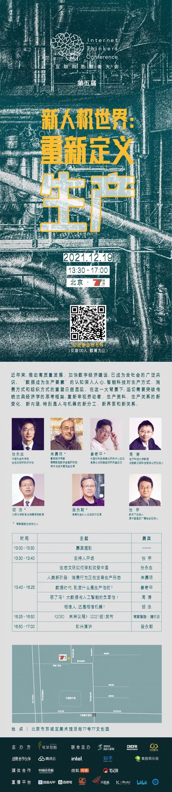 如果您愿意现场参与第五届思想者大会“新人机世界:重新定义生产”,请扫描海报二维码报名,名额有限,额满为止。