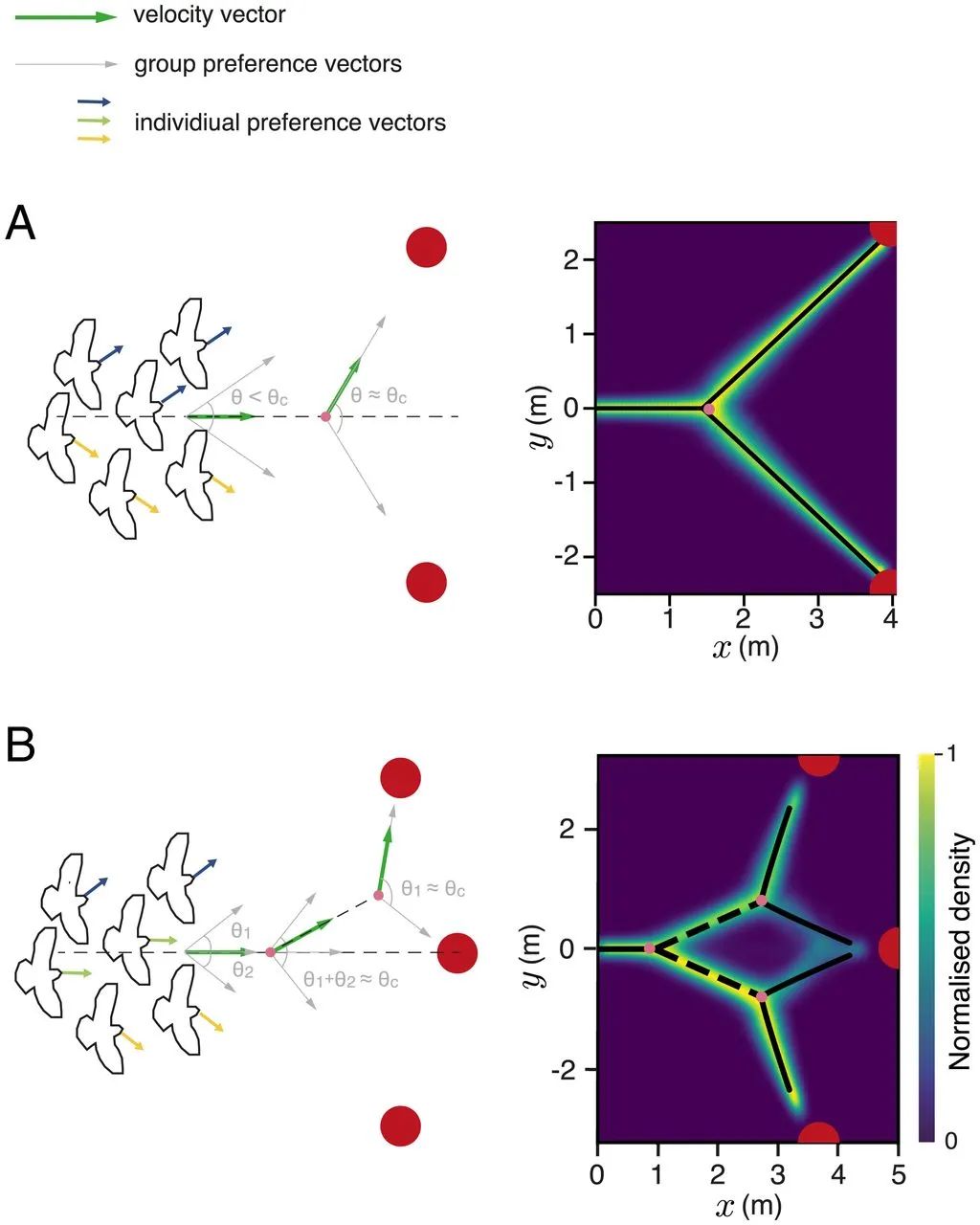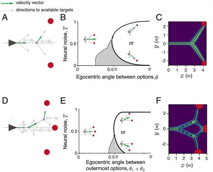 来自德国马克斯·普朗克动物行为研究所、以色列魏茨曼科学研究所和匈牙利罗兰大学的生物学家、工程师和物理学家合作,对动物在空间移动中的决策机制进行了研究。这个跨学科团队从神经生物学、物理学和动物行为学中获得灵感,构建了一个大脑决策计算模型。该模型将动物移动与大脑神经动力学的相互作用纳入框架,以模拟大脑在面对备选目标方向时各个选项的表征。