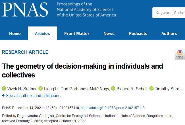 想象一只老鹰正在捕捉兔子,两者都在高速移动,兔子左右逃窜以躲避追捕,老鹰也随之调整追捕路径。实际上,无论在天上或地下,不管在觅食或避险,动物的生活都能被抽象为空间上的移动,以及关于如何移动的决策。这一看似平常的现象背后却有着高度动态且统一的动力学机制。德国马克斯·普朗克动物行为研究所的团队12月14日于PNAS发文,通过虚拟现实技术解码动物在空间移动中的决策机制,发现动物将对多个目标的选择分解为一系列二元选择来应对环境的复杂性。从神经动力学到个体决策,从个体决策到集体行为,该研究揭示的决策机制不仅跨越了物种、环境,也跨越了生命层次。
