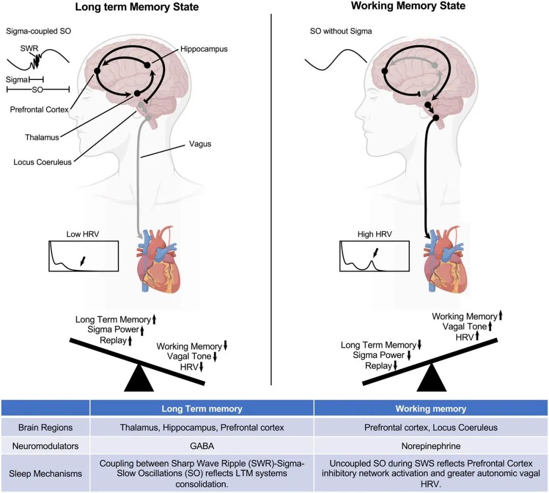 除了以上不同点外,长时记忆和工作记忆也存在一些相同点。比如,两者都依赖于包括睡眠在内的离线时段巩固自身,并且两者的巩固过程都发生于同一个慢波(slow-wave)睡眠周期,即在入睡后的3~4小时间。但对于大脑如何在慢波睡眠期间同时改善长时记忆和工作记忆,人们知之甚少。近日,加州大学欧文分校的一个研究小组发现,在睡眠过程中,长时记忆和工作记忆的离线神经机制(offline neural mechanism)互不相容,也就是说大脑必须在两种记忆模式之间切换。这项发表在PNAS上的研究,首次阐明了人类大脑对两种记忆的权衡机制。