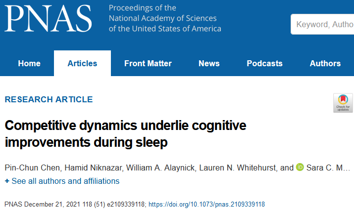 PNAS速递:睡眠过程中记忆的竞争动力学