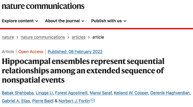 论文题目:Hippocampal ensembles represent sequential relationships among an extended sequence of nonspatial events 期刊来源:Nature Communications 论文地址:https://www.nature.com/articles/s41467-022-28057-6