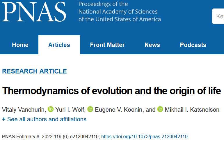 论文题目:Thermodynamics of evolution and the origin of life 期刊来源:PNAS 论文地址:https://www.pnas.org/content/119/6/e2120042119