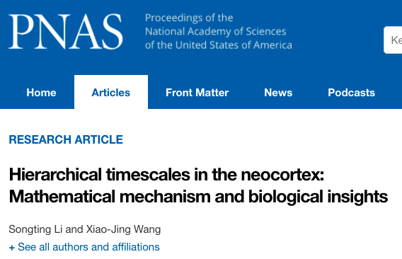 论文题目:Hierarchical timescales in the neocortex: Mathematical mechanism and biological insights 期刊来源:PNAS 论文地址:https://www.pnas.org/content/119/6/e2110274119