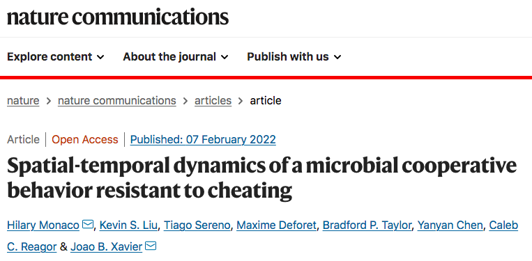 论文题目:Spatial-temporal dynamics of a microbial cooperative behavior resistant to cheating 期刊来源:Nature Communications 论文地址:https://www.nature.com/articles/s41467-022-28321-9