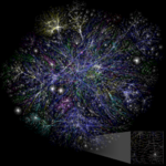 图2:2005年1月15日的因特网局部图,其中枢纽被突出显示