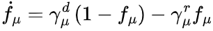 (式1)。平衡状态下,网络中失效的节点占比为: