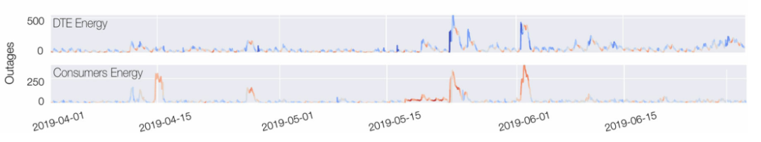 图4. DTE Energy 和 Consumers Energy 两家公司2019年的停电记录。